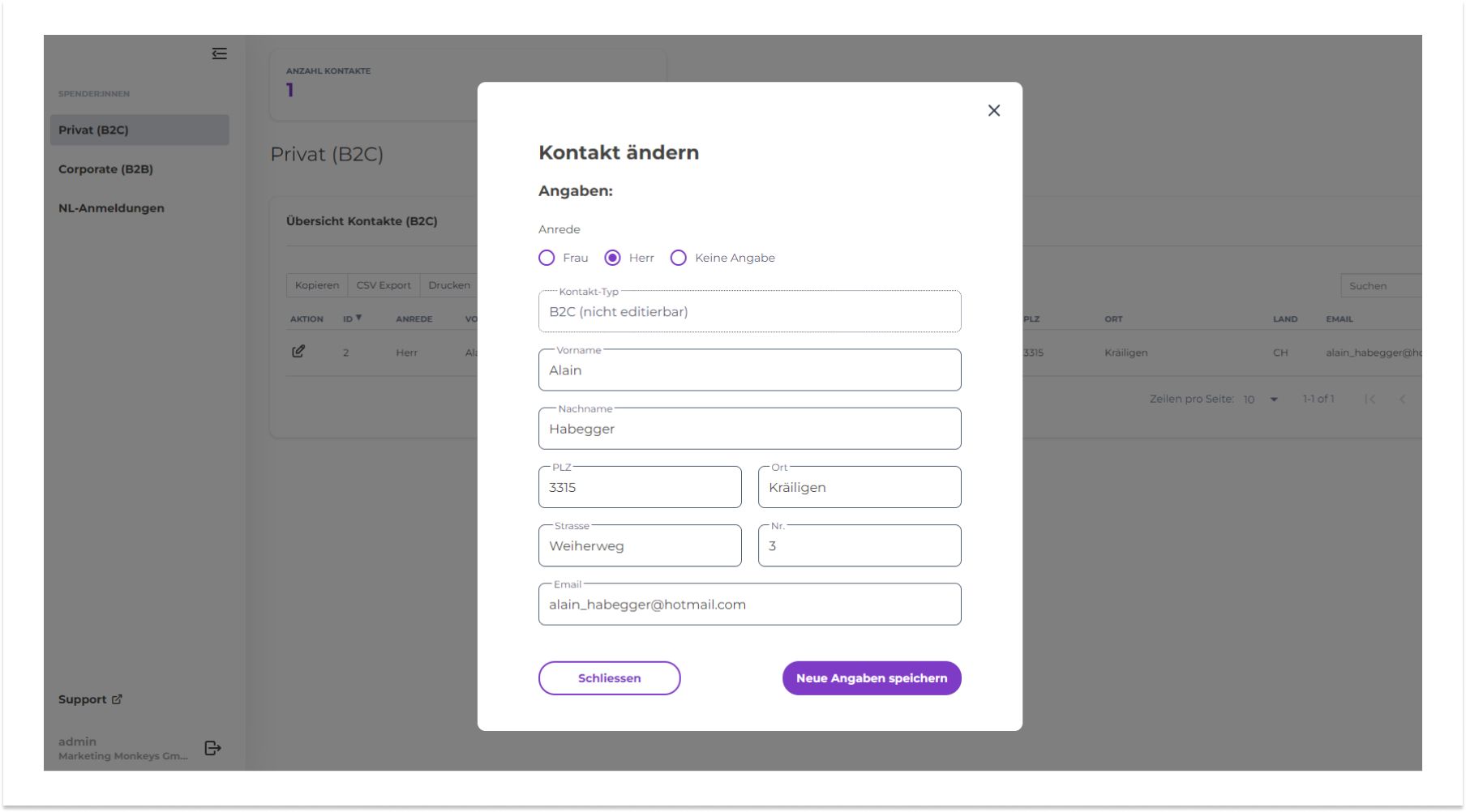 Im Soulclick Manager gibt es neu ein Kontaktmodul, welches das Editieren und Exportieren von Kontakten ermöglicht. In Kombination mit dem Lead Generation Modul können so die Kontakte des digitalen Fundraisings an einem Ort zentral gemanagt werden.
