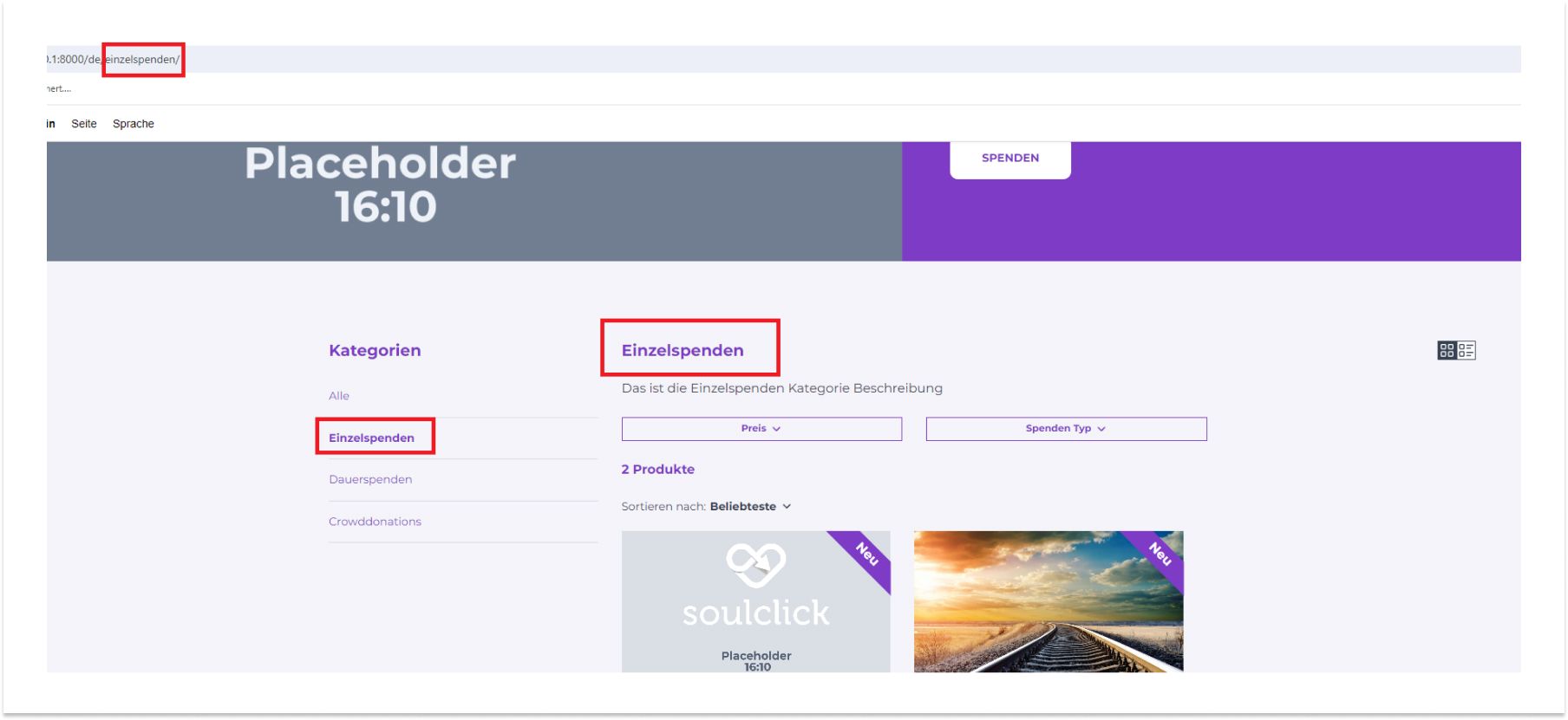 Diese SEO-Optimierung verbessert die Auffindbarkeit und Reichweite aller Soulclick Spendenportale. Neu werden die Kategorien deines Spendenportals automatisch im URL-Slug angezeigt. Somit werden die Landingpages der einzelnen Kategorien bei Google und Co. noch besser gefunden. Ebenfalls werden einzelne Produkte mit der Kategorie als URL-Slug aufgelöst.