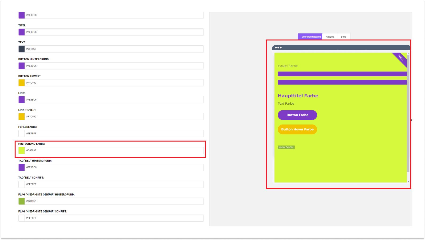 Achtung:Bei Wahl einer Farbe mit schwachem Kontrast, leidet die Accessibility des Portals stark. Somit ist das Spendenportal für Menschen mit Einschränkungen (z.B. reduzierte Sehkraft) nur noch beschränkt zugänglich.
