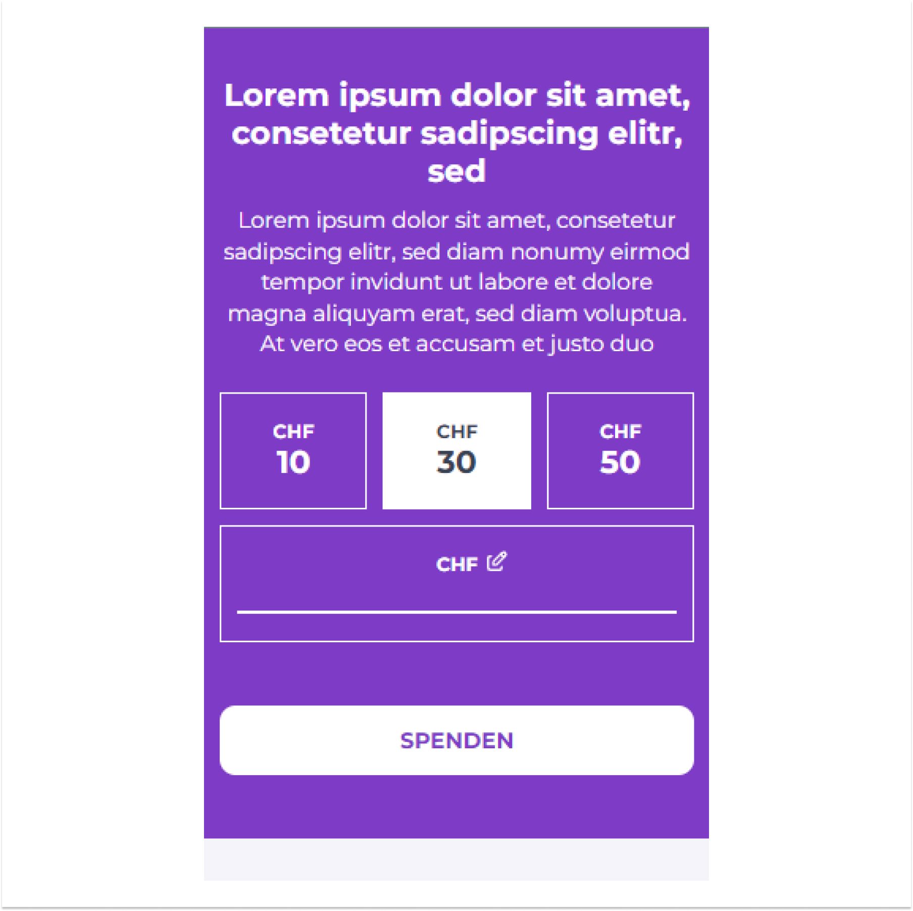 Neu ist Soulclick auch für die kleinsten Mobiltelefongrössen optimiert. Die Spendenkacheln und weitere Frontend-Elemente wurden entsprechend optimiert, damit diese sowohl funktional wie auch ästhetisch ideal ausgelegt sind.