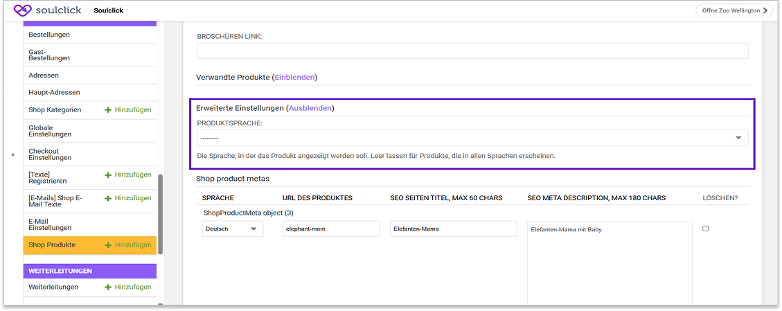 Für Shopartikel wie zum Beispiel Bücher ist es nun möglich, anzugeben, in welcher Sprache dieser Artikel verfügbar ist.