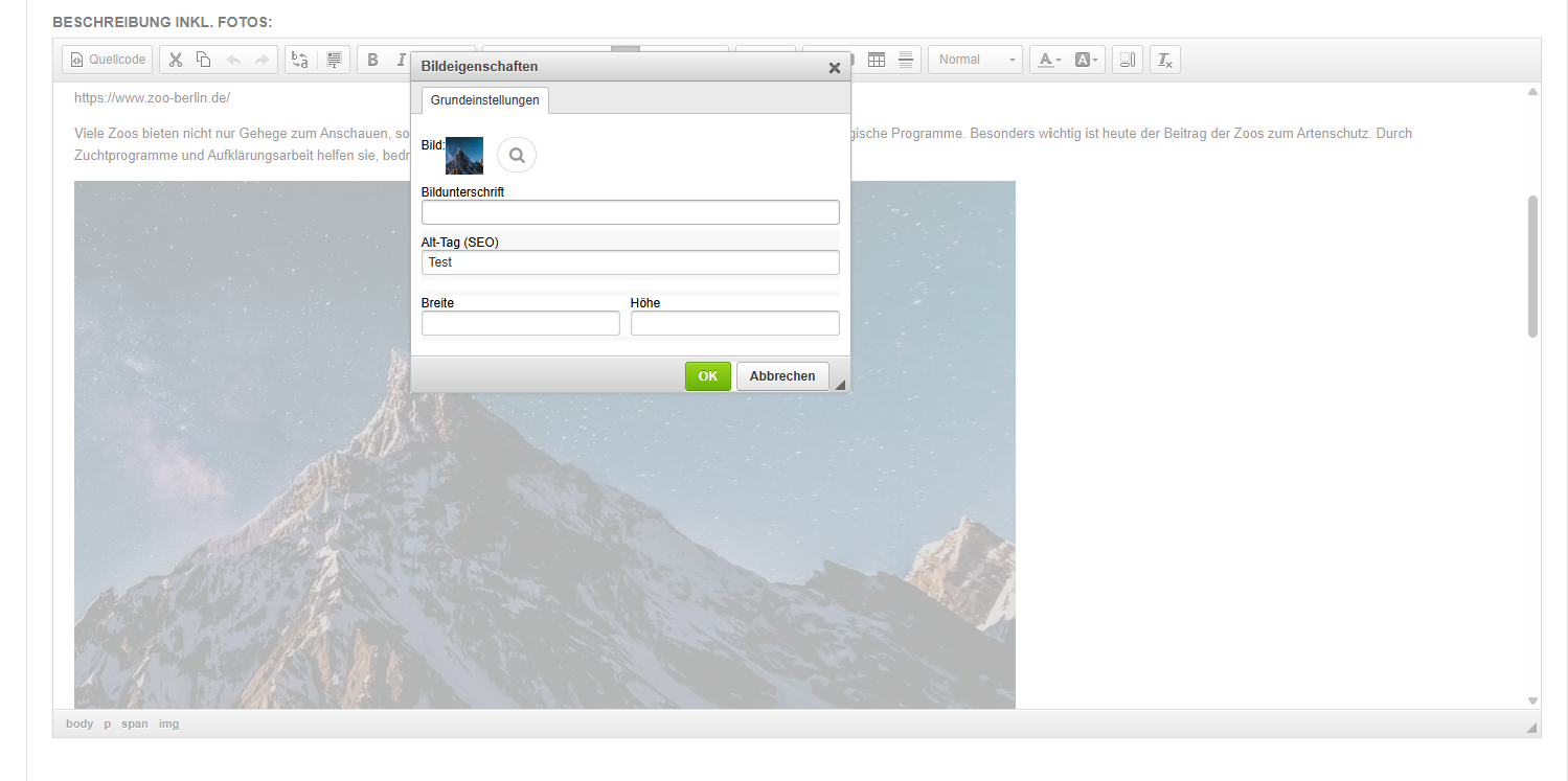 Der Text Editor unterstützt jetzt die zentrale Filer-Bildverwaltung. Du kannst Bilder hochladen oder bereits vorhandene Bilder aus dem Filer (Dateiablage) auswählen – keine mehrfachen Uploads mehr nötig.