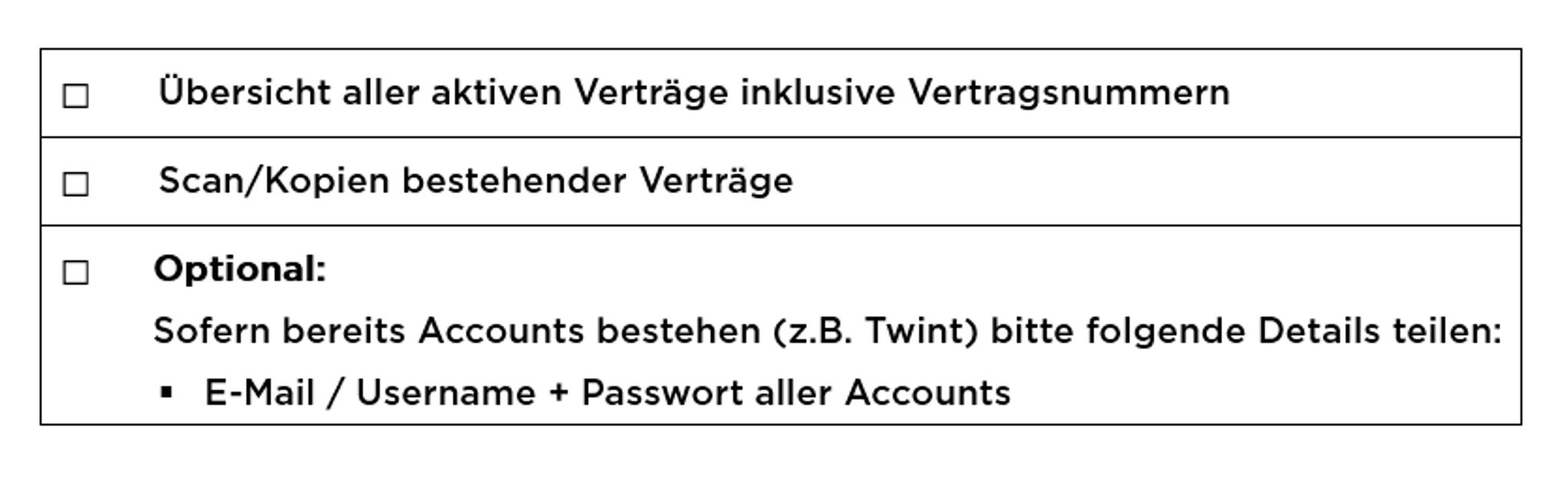 Sofern bereits Verträge bestehen, benötigen wir folgende Angaben: