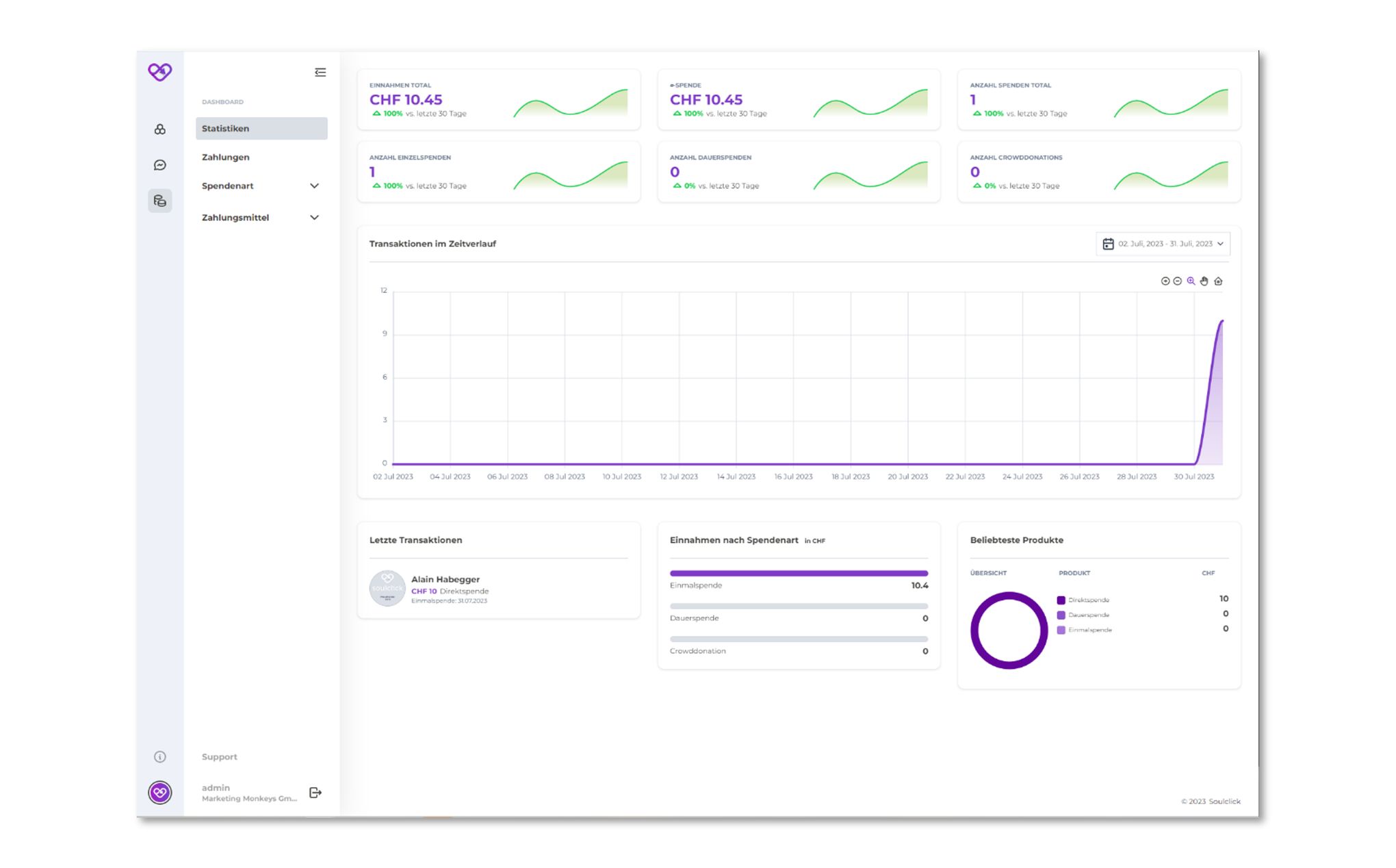 Wichtig:Testspenden werden nach dem Go Live auf dem Soulclick Manager zurückgesetzt. Danach ausgeführte Test-Zahlungen (z.B. QR-Rechnungen) können durch den 2nd Level Support kostenpflichtig zurückgesetzt werden.